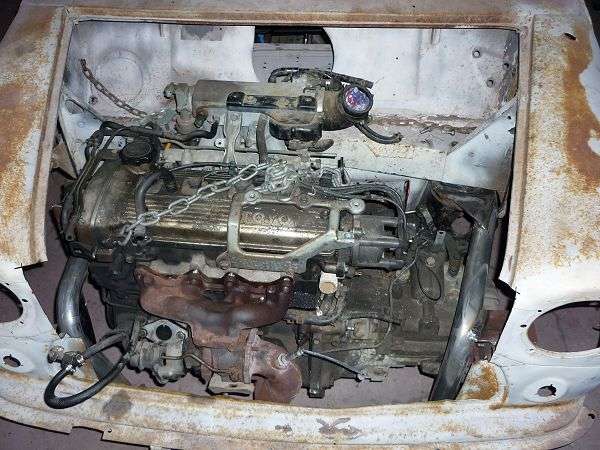and engine were painted and installed. A two-pack black for