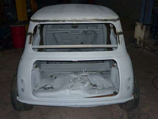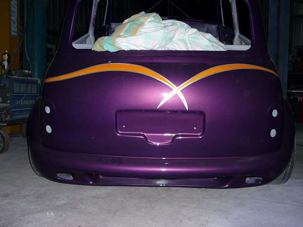 quarter glass. Welded the Starlet fuel tank itothe boot, reshaped the number-plate
